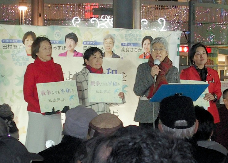戦争よりも平和を選ぶ 共産党、社民党、新社会党、沖縄の風 女性4党首・幹事長が街頭トーク |