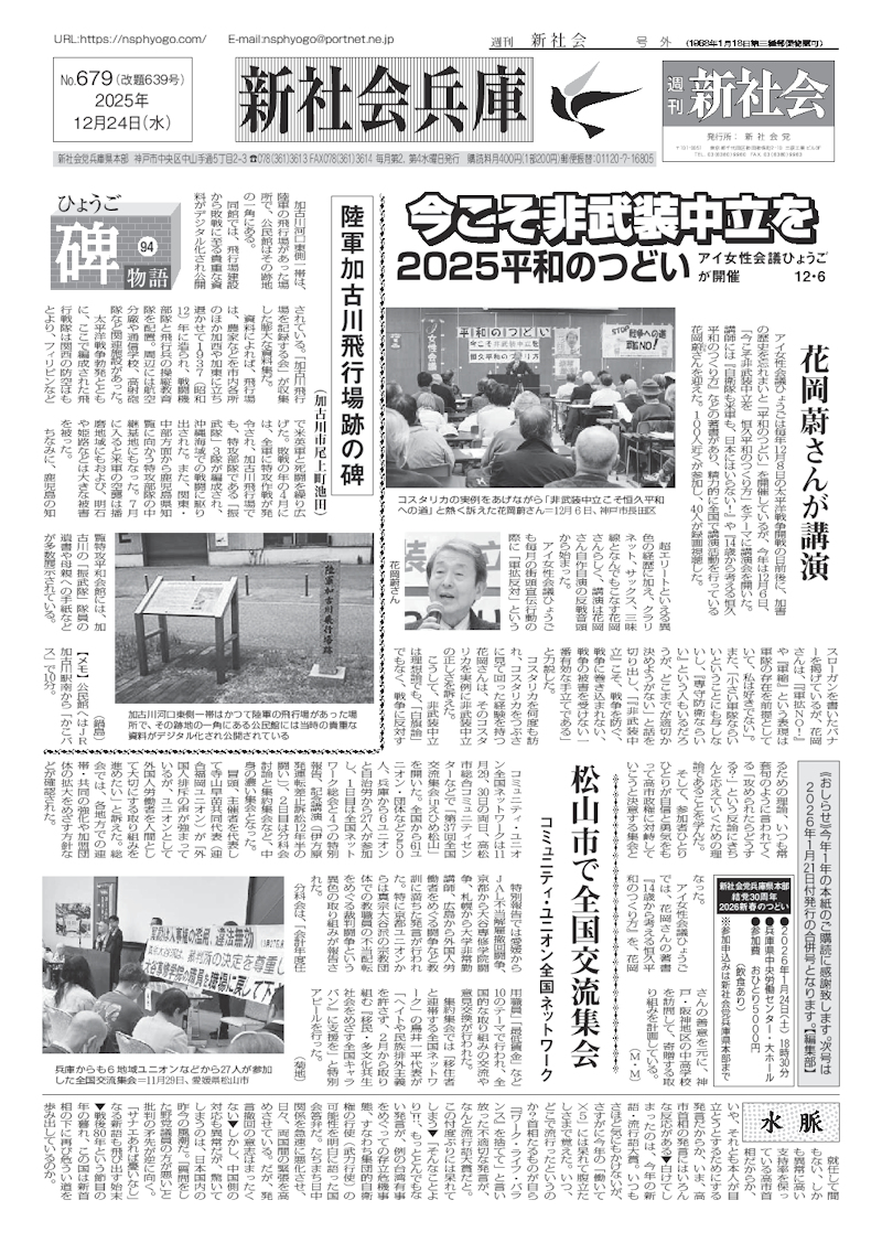 今こそ非武装中立を 2025平和のつどい アイ女性会議ひょうごが開催 12.6 |
