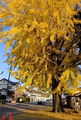 店のすぐそばには大イチョウがあり、秋になるとその見事な黄葉を見にたくさんの人が訪れるそうだ。店の前に駐車場があり、車で行くもよし、北条鉄道でのんびり行くもよし、読者のみなさんもぜひ一度足を運んでみてください。店で「新社会党」の名前を出すと何かサービスがあるかも。(火・水は定休日)