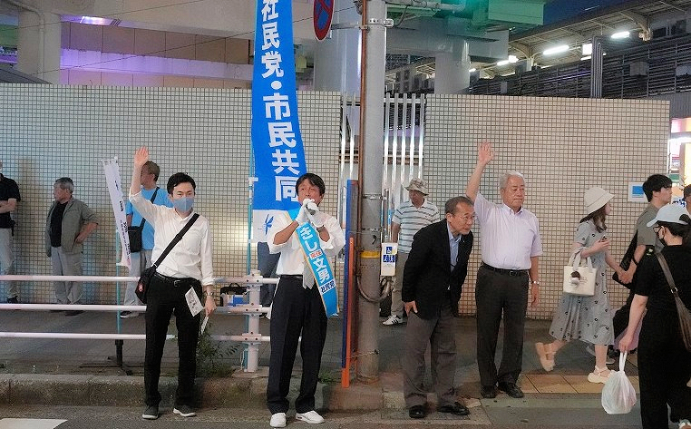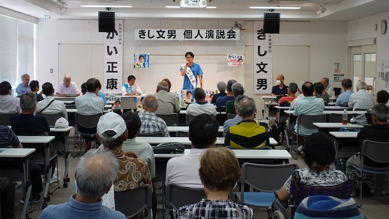 ●きし文男さん個人演説会かい正康さんも参加=7月12日、高砂市