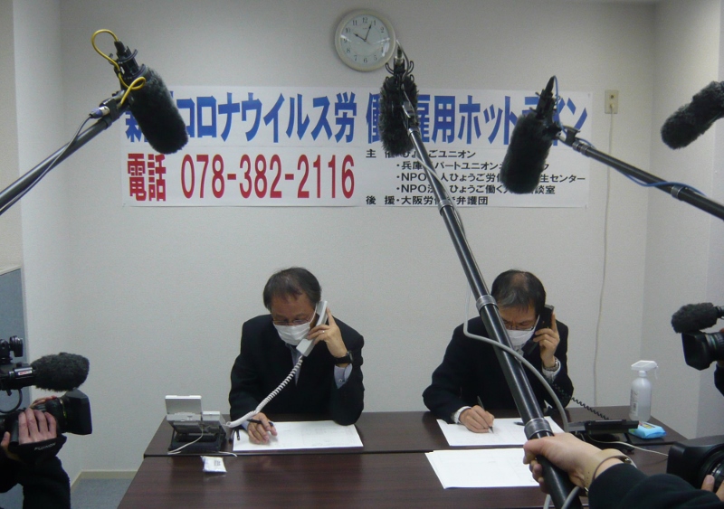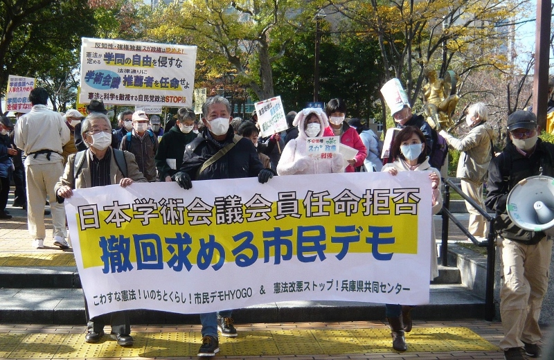 (写真説明 上から順番に)▶新型コロナウイルス 労働・雇用ホットライン=2020年3月6日 ▶連帯ひょうごみなせんの街頭アピール=2020年7月20日 ▶老朽原発うごかすな!9・6大集会inおおさか=2020年9月6日 ▶日本学術会議会員任命拒否の撤回を求める市民デモ(第3弾)=2020年12月6日