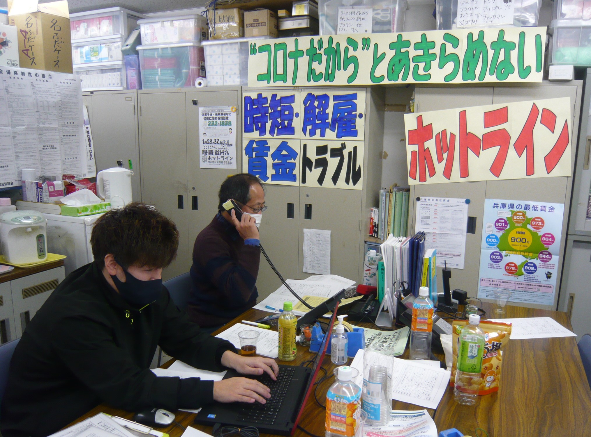 長引くコロナ禍の雇用・労働への影響は、緊急事態宣言の再発令・延長が追い打ちをかけるようにさらに深刻なものになっている。2月9日の厚生労働省の発表でも、コロナ禍に関連する解雇・雇い止めは、見込みを含めて累計8万6551人で、直近の1週間での増加幅も拡大し、緊急事態宣言の対象地域を中心に解雇が加速していることが明らかになっている。数字に表れてこない失業も多く、失業の実態はこの数字をはるかに上回る。こうした中、ひょうごユニオン(岡崎進委員長)は1月29、30日の両日、傘下の県内8つの地域ユニオンで「コロナ緊急事態宣言 生活と雇用を守るホットラン」を一斉に開設し各地で電話相談活動に取り組んだ。