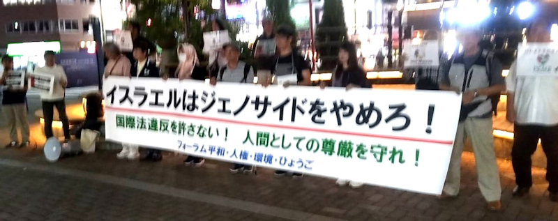 イスラエルはジェノサイドをやめろ 隔週で続けるガザ停戦アピール行動 フォーラムひょうご |
